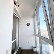 В квартире сделан хороший ремонт: плитка, ламинат в жилых комнатах, аккуратные межкомнатные двери, входная металлическая дверь, панорамные окна ПВХ как в жилых комнатах, так и в лоджии, кондиционер. Высокий этаж.