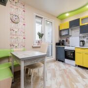 -Просторная кухня, площадью 9,5 кв.м. На полу уложена плитка, стены оклеены обоями, потолок натяжной. Остаётся модульный кухонный гарнитур, электрическая плита и угловой диван, что позволяет сразу заехать и жить без дополнительных вложений.