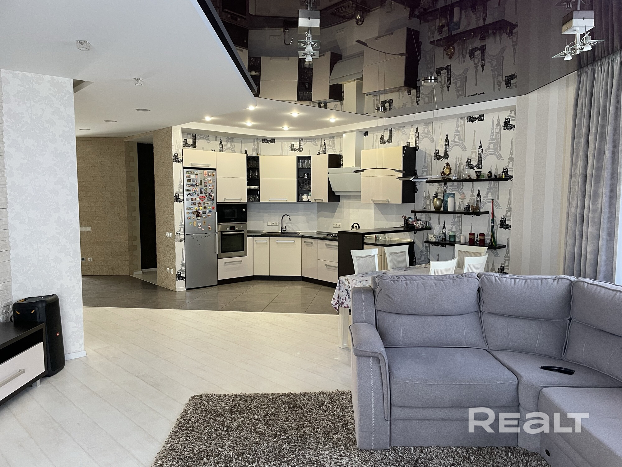 Квартира одна на этаже, в доме клубного типа. В квартиру приходит лифт. Общая площадь квартиры 201,6 м.кв., площадь террасы 34,2 м.кв. Тихое, уютное место.