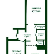 Площадь квартиры общая 52,1 (комнаты 17,7 и 11,9 ),жилая 29,6, кухня 9,3 кв.метров
