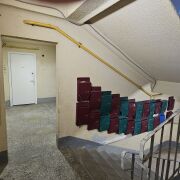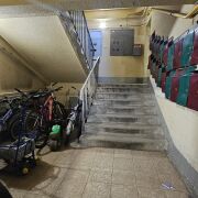 Тамбур на 3 квартиры — вдоль стены имеется место под шкаф, велосипеды, тюбинги.