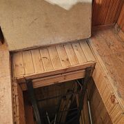 - Подвал под балконом утеплен и оформлен вагонкой из натурального дерева, имеются стеллажи - идеальное место для хранения инструментов, автомобильных шин , новогодней елки и украшений, закаток, овощей и прочих нужных вещей.