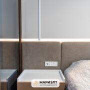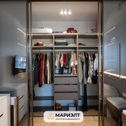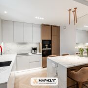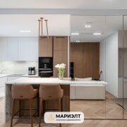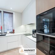При продаже в квартире остается вся мебель: диван, полубарные стулья и кровать премиального бренда Sofa Club изготовленная по индивидуальному заказу, встроенная кухня с фасадами из крашенного МДФ и шпона, оснащенная самой современной техникой Bosch европейского производства, в прихожей встроенные  шкафы.