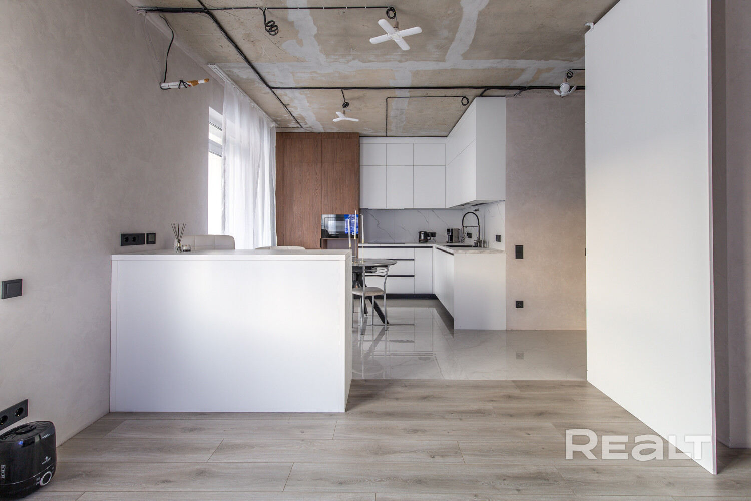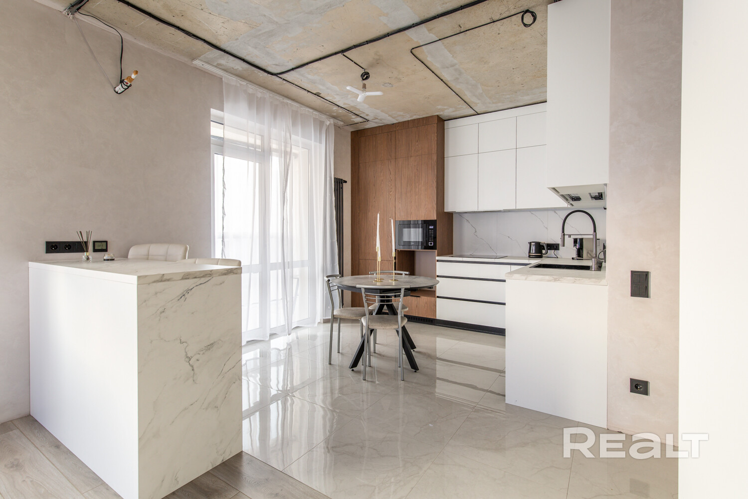 -В квартире выполнен качественный ремонт. Осталось только сделать натяжные потолки и установить плинтуса. Также можно установить перегородку из алюминия согласно дизайну-проекту (для выделения спальной зоны). Имеется вывод под кондиционер. Лоджия с подогревом. Вся мебель и техника остается новым владельцам.