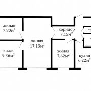 В квартире предусмотрены три изолированные комнаты и одна общая гостиная. Такая конфигурация позволяет организовать полноценную детскую, спальню и рабочий кабинет. В качестве дополнительного преимущества за квартирой закреплено подвальное помещение для хранения сезонных вещей.