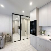 • мебель на заказ со встроенной техникой (индукционная варочная панель indesit, духовой шкаф indesit, микроволновая печь Weissgauff, посудомоечная машина indesit, встроенный холодильник , встроенная вытяжка ,телевизор со Smart TV).