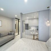 Квартира имеет грамотное зонирование, которое позволяет разделить пространство на зоны кухни, гостиной, коридора, а также выделено отдельное спальное место.
