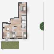 Квартиры с террасами на 1-м этаже площадью от 18 до 28 кв.м — полноценные террасы с видом в зеленый коридор и во двор.