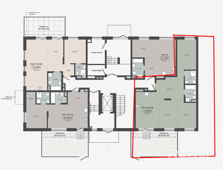 Квартира с террасой 28,42м2.