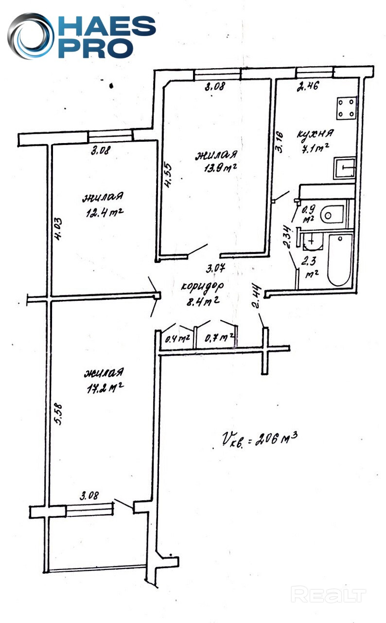 • Общая площадь: 63,3 м2