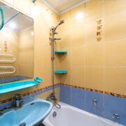 -На полу - сочетание кафеля, ДСП и линолеума: покрытия надежные и износостойкие. Вся мебель останется вам - можно заехать сразу и спокойно планировать обновление под себя, без срочных вложений.