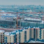 Зеленая парковая зона, международный финансовый центр и крупнейший торговый центр Авиа Молл в центре комплекса.