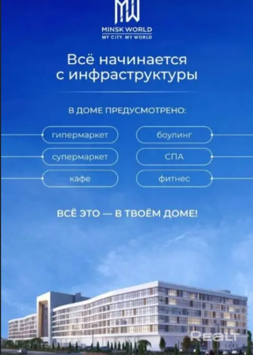 В пешей доступности будет вся собственная инфраструктура Minsk World – взрослая и детская поликлиника, медицинский центр, кафе и магазины, парковки, спортивные залы и фитнес-центры.