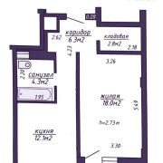 -Общая площадь составляет 43,5 м2 (жилая площадь 18 м2) – компактное, но удобно организованное пространство.