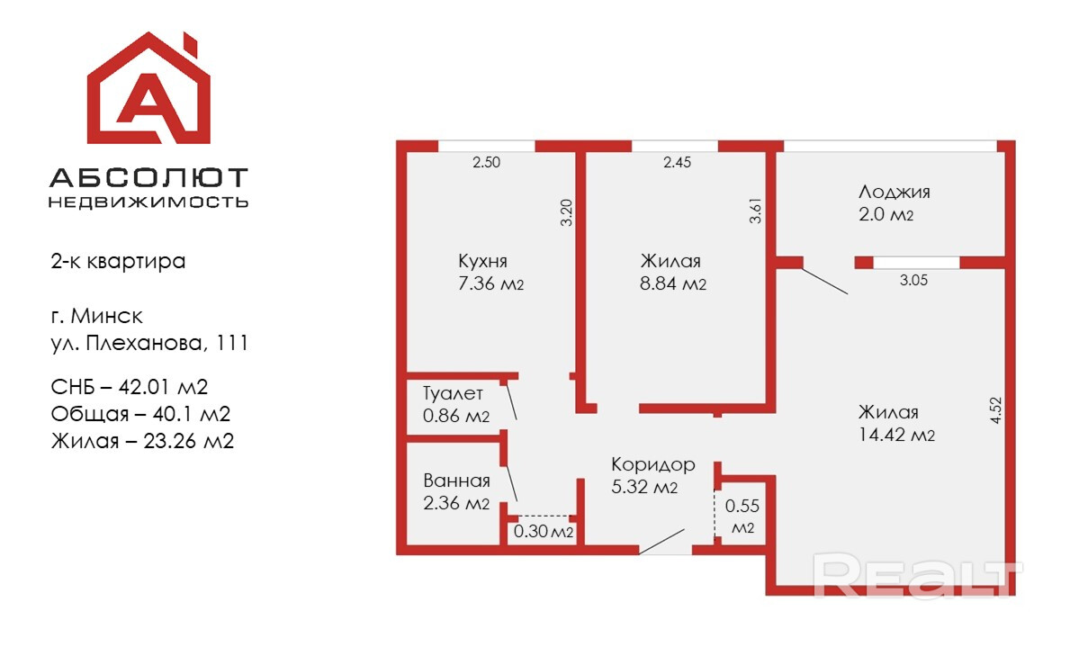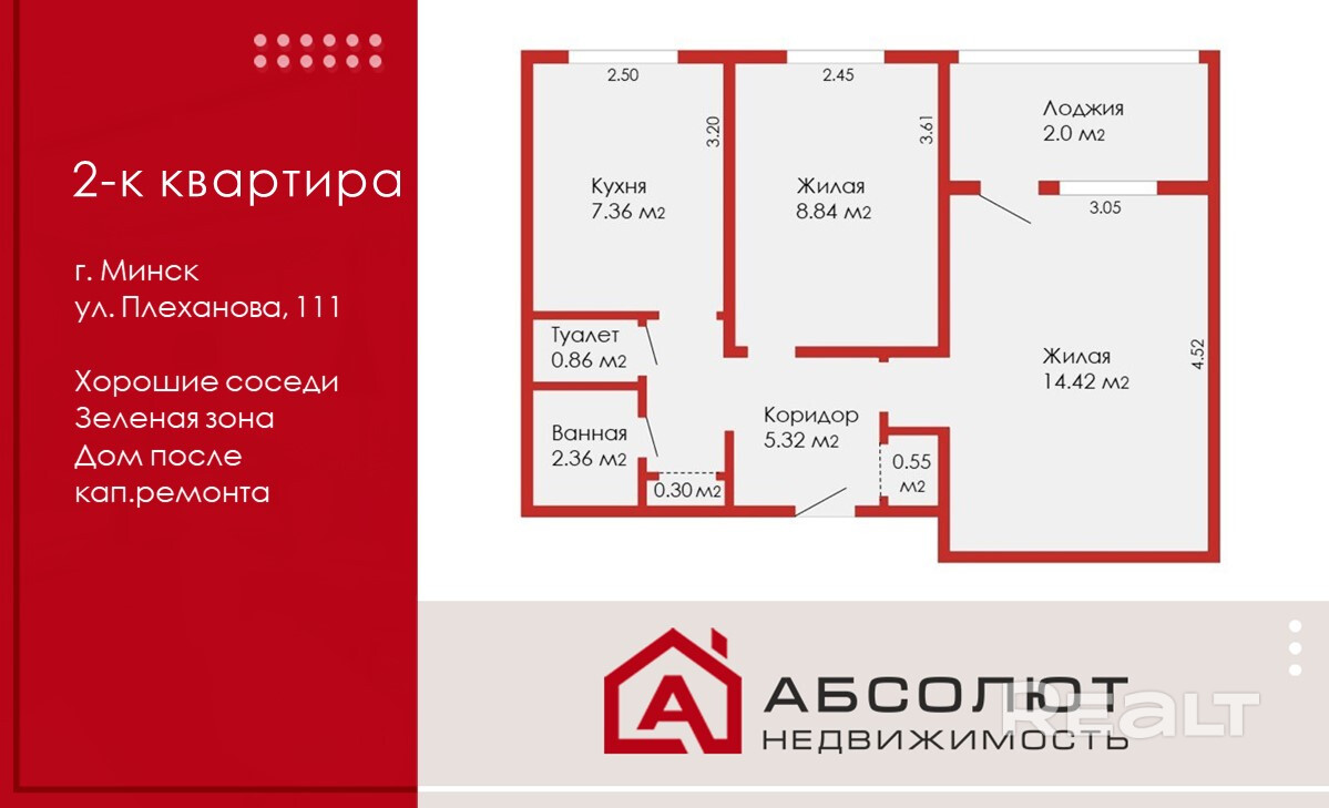 Продается 2-комнатная квартира, ул. Плеханова, 111