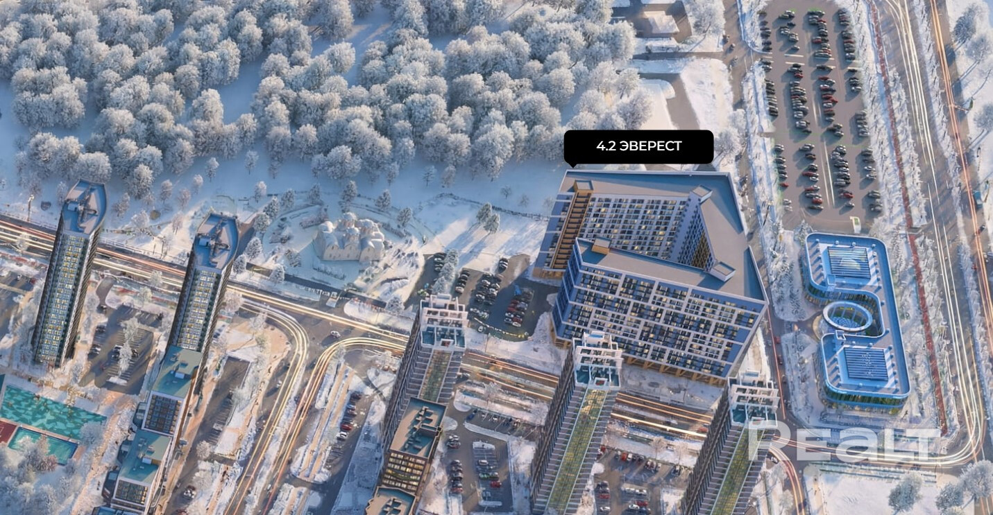Дом именовали звучно — «Эверест». Оно спроектировано своеобразным полуколодцем, один из углов которого взмывает верх, будто пик горы. Под домом разместится подземный паркинг на 239 машино мест. Первый этаж займут коммерческие помещения, а со 2-го по 15-й — жилые.