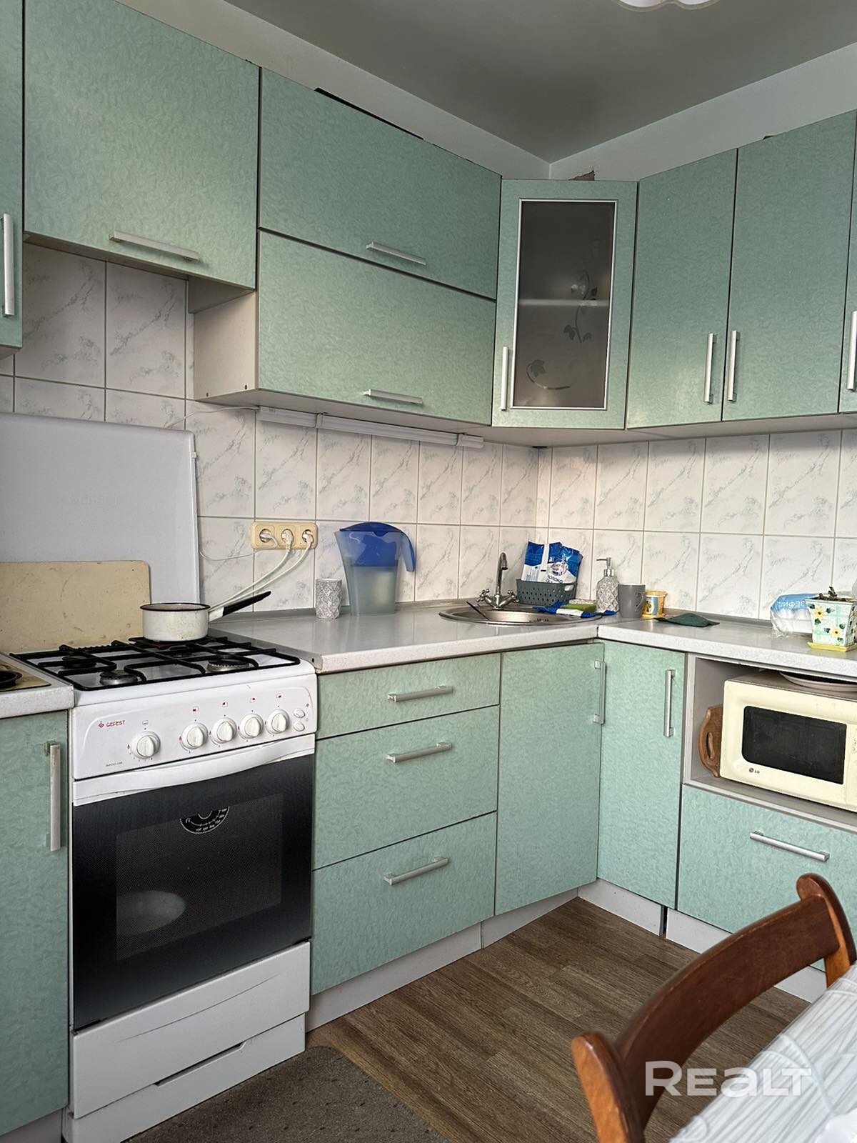 Кухня 8.2 кв.м квадратной формы. Сан. узел раздельный( в нём при желании можно поменять плитку).