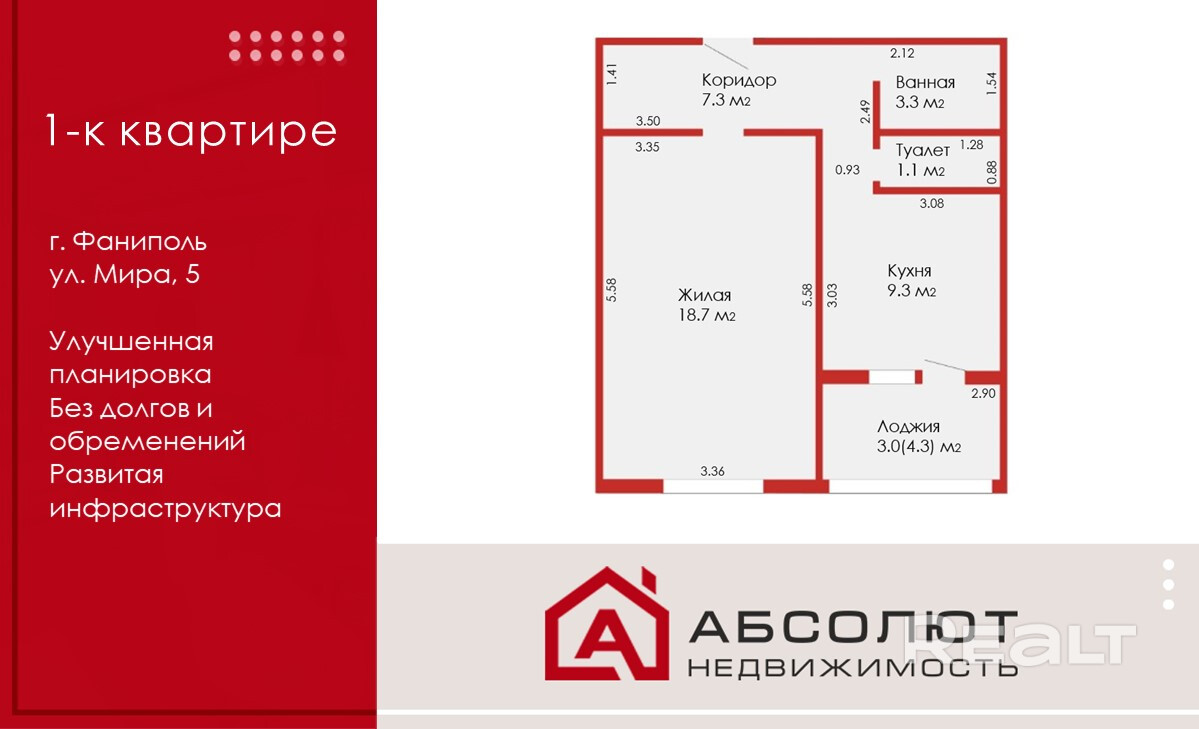 Продажа 1-к квартиры с лоджией и хорошим ремонтом! Фаниполь, ул. Мира, 5