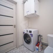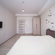 В квартире. Два совмещенных санузла, 2 лоджии с остеклением, гардеробная. Выполнена строительная отделка: на полу линолеум, плитка.  На стенах поклеены обои, натяжные потолки разведена электрика, , в санузлах установлены унитазы , ванная ,мойки ,и поддон для душа, счетчики воды.