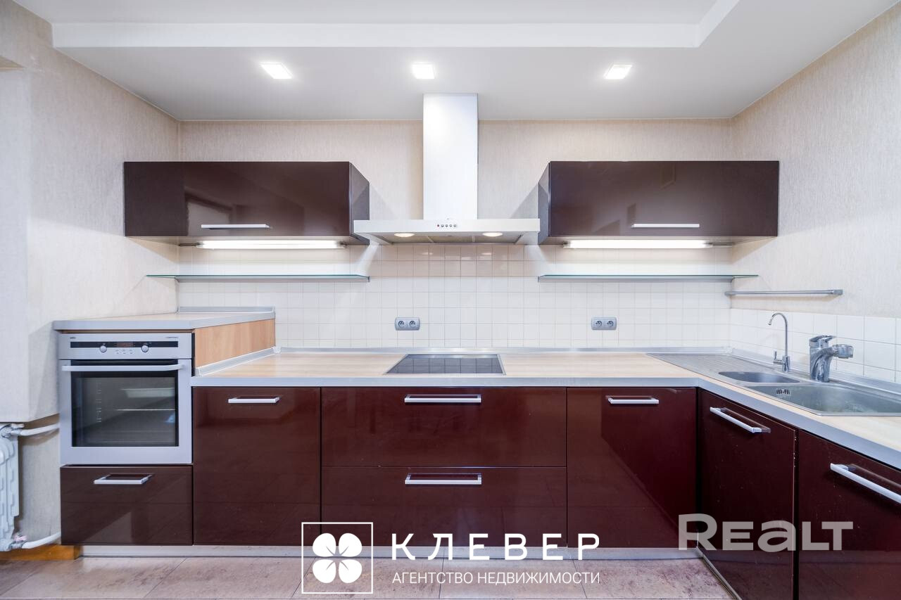 Всё включено: Остается кухонный гарнитур со встроенной техникой (посудомойка, духовой шкаф, варочная панель, вытяжка) и вместительные шкафы-купе.