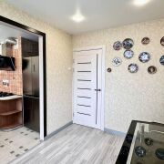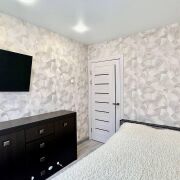 -В интерьере использованы стильные обои в коридоре и нейтральные обои в спальне, создающие атмосферу спокойствия. Квартира оснащена современными межкомнатными дверями и продуманным освещением, что делает её ещё более светлой и уютной, потолки натяжные. Все материалы, использованные в ремонте, гарантируют долговечность и высокую эстетическую привлекательность на долгое время.