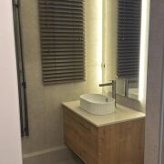 -Парящие натяжные потолки с подсветкой и встроенными зеркалами, ламинат Qucstrep и плитка Keramomarazi создают комфорт и уют. Встроенная техника: варочная панель и духовой шкаф Bosh, посудомоечная машина Samsung, стиральная машина LG. Все краны и дверные ручки выполнены в цвете сатин, что добавляет элегантности интерьеру.