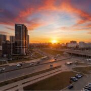 Вид, который не надоест: Панорамное остекление и высокий этаж обеспечивают максимум света и захватывающие закаты каждый день.