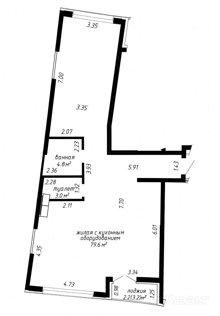 Эта квартира площадью 89,6 м2(СНБ) создана для тех, кто ценит масштаб, свет и функциональность.
