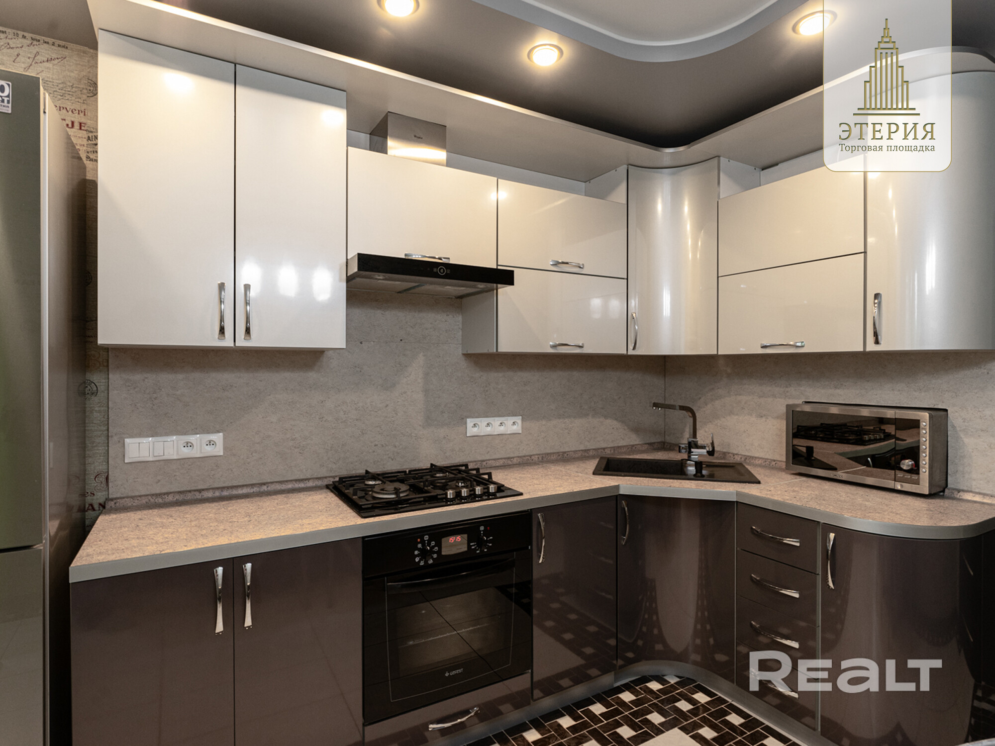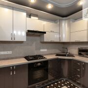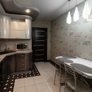 Кухня оснащена всем необходимым (встроенная бытовая техника, посудомоечная машина, духовой шкаф.