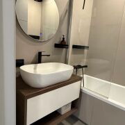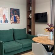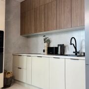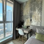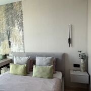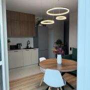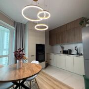 Функциональная и современная планировка: кухня-гостиная с выходом на лоджию и две изолированные комнаты: спальня и детская. Квартира выполнена в минималистичном стиле в серо-бежевых тонах. Вдоль гостиной атмосферная лоджия с шикарным видом с 13-го этажа. Красивый вид открывается из всех комнаты! Квартира укомплектована премиальной техникой Bosch (на часть имеется расширенная гарантия).