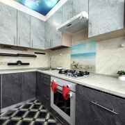 • Встроенная кухня с бытовой техникой, посудомоечная машина, а также имеется бойлер для подогрева воды.