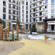 Двор «без машин», имеет закрытую территорию, на которую можно попасть только жильцам по чип-ключу. Во дворе расположены современные детские площадки, зоны отдыха для взрослых, велобокс и много зелени.