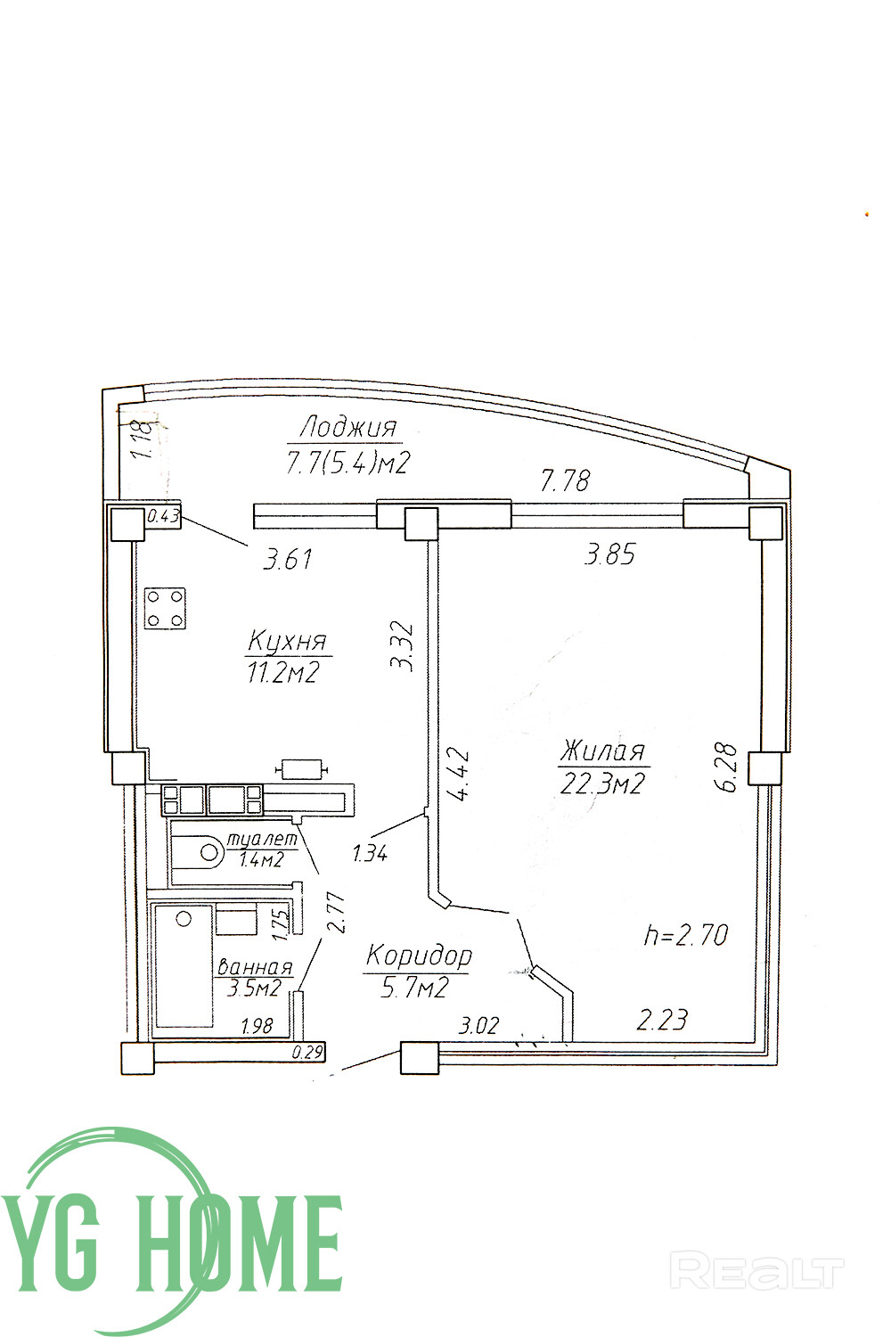 Общая площадь квартиры по СНБ – 49.5 кв.м., общая площадь – 44.1 кв.м., жилая площадь – 22.3 кв.м., кухня – 11.2 кв.м. с выходом на лоджию, высота потолков - 2.70 м. На этаже три квартиры, подъезд аккуратный, жильцы уважаемые и доброжелательные. Товарищество собственников на 5 домов.