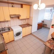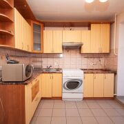 -Кухня функциональна и практична. Установлен удобный кухонный гарнитур, который остаётся новым владельцам. На полу уложена керамическая плитка – идеальное решение для кухонной зоны.