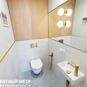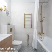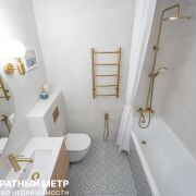 Раздельный санузел с ванной и бойлером, гигиеническим душем, а также встроенной мебелью и стильной сантехникой, добавят комфорта проживанию.