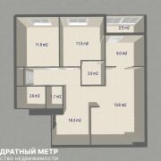 Общая площадь – 81,5 м2 (плюс отдельная кладовая 2,6м2), жилая площадь 54,9 м2, лоджия - 2,5 м2, мастер-спальня- 11,5 м2 с гардеробной 3,0м2, вторая изолированная комната назначением спальня/кабинет/детская -11,8 м2, третья изолированная комната 9,0 м2.