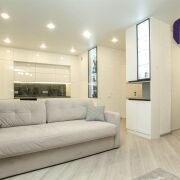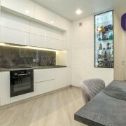 - Квартира расположена на 8 этаже 9-этажного дома, Общая площадь 43,6 м2 по СНБ. Просторная жилая зона грамотно объединена с кухонной зоной, что создает современное открытое пространство.