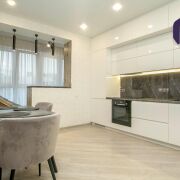 - Интерьер выполнен с использованием качественных импортных материалов, предусмотрены сценарии освещения, кухня сделана по индивидуальному проекту, с встроенной техникой премиального бренда Bosch.