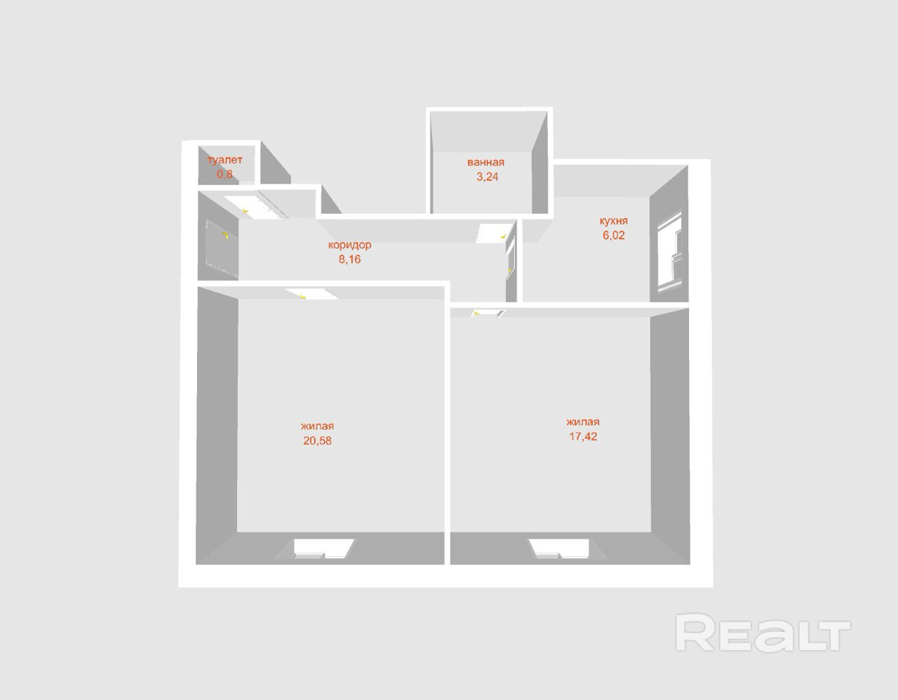 Общая площадь 56,22 отличный метраж для комфортного проживания одного человека, пары или небольшой семьи. Просторные раздельные комнаты.