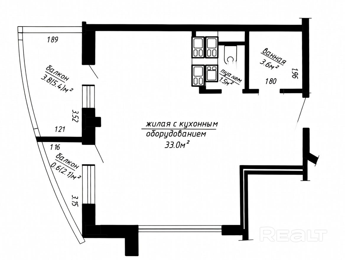 - Площадь кухни