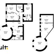 Общая площадь –  181.5 кв.м, жилая - 130.6 кв.м, кухня-гостиная – 25.9 кв.м, 2 санузла.