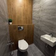 Просторная ванная комната с качественной сантехникой (многофункциональная душевая система), в туалетной комнате установлен гигиенический душ;