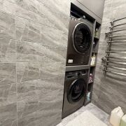 Квартира оборудована всей необходимой техникой: индукционная варочная панель Samsung, духовой шкаф LG, встроенная микроволновая печь Hansa, посудомоечная машина, холодильник LG, стиральная и сушильная машины Samsung;
