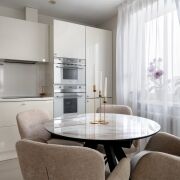 *В квартире три изолированные комнаты и большая гостиная с панорамными окнами с видом на «Стеллу», на полу установлена система «теплый пол».