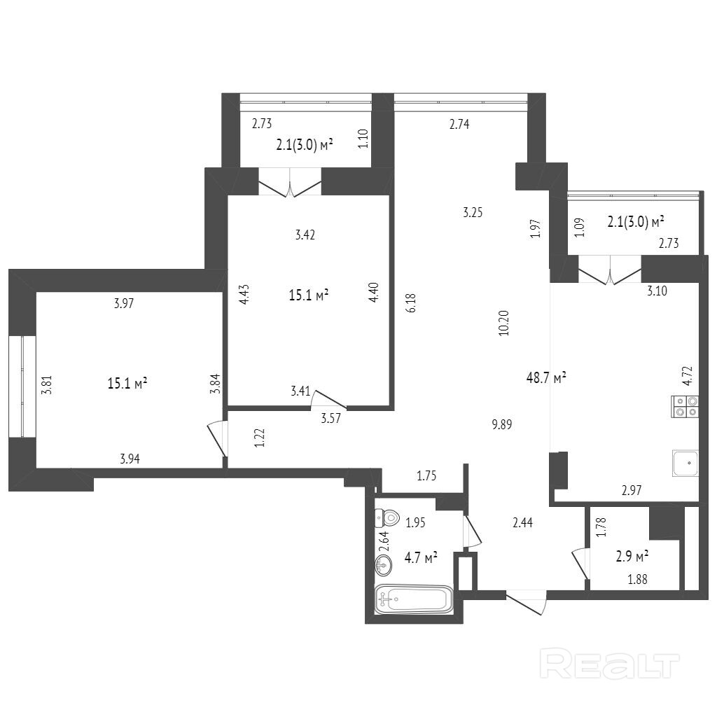 ·  Площадь квартиры по СНБ 90,7 м2