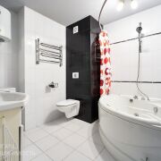 Площадь квартиры по СНБ – 65.3 м2. Кухня объединена с гостиной, совмещенный санузел, гардеробная комната.