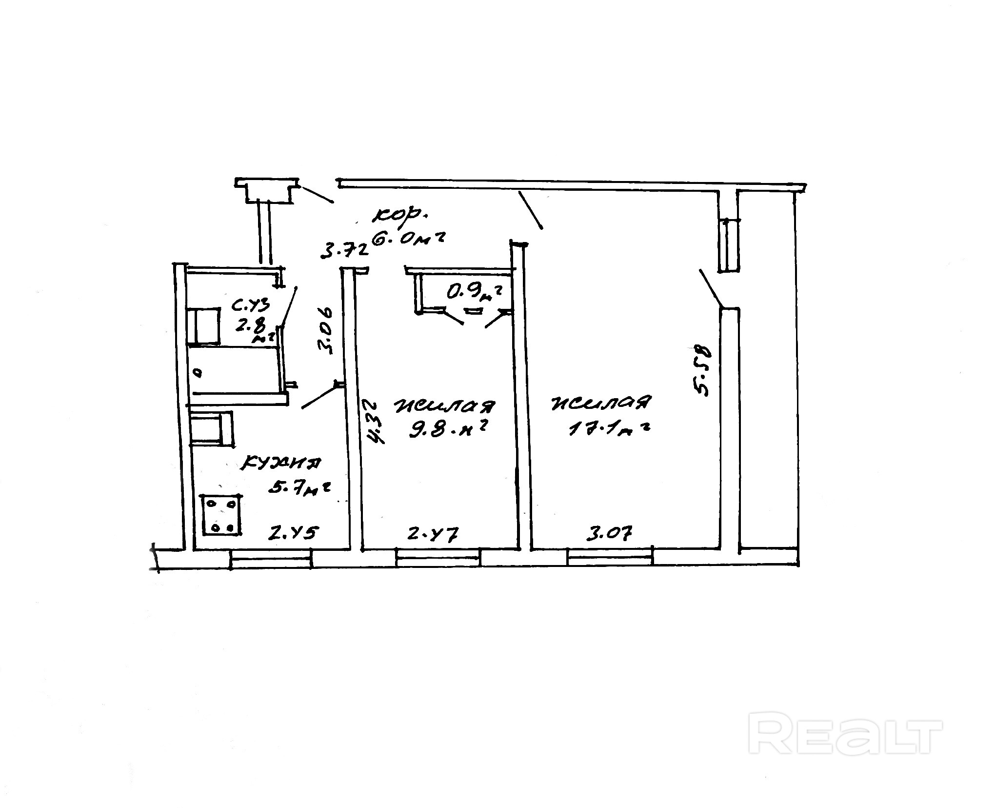 Квартира расположена на 2-ом этаже 5-ти этажного панельного, утепленного дома. Площадь 43.8 м.кв. по СНБ, жилая 26.9 м.кв. (комнаты раздельные: 17.0 м.кв. и 9,8 м.кв. с видом из окон во двор).
