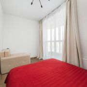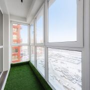 -Застеклённый балкон расширяет функциональность квартиры и может использоваться как зона отдыха или рабочее место с видом на город.