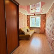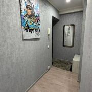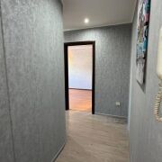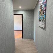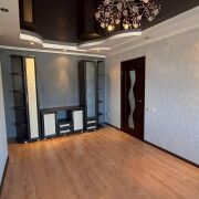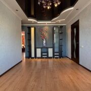 -Выполнен качественный ремонт: стены выровнены, уложен ламинат под дерево, установлены двухуровневые потолки (натяжные и гипсокартон), алюминиевые радиаторы отопления и окна ПВХ. Входная дверь металлическая, межкомнатные двери —  эстетичные.