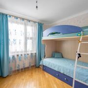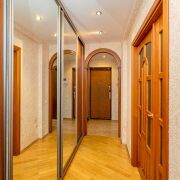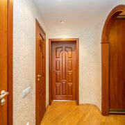 -Пол в жилых комнатах и коридоре выполнен из качественного дубового паркета.